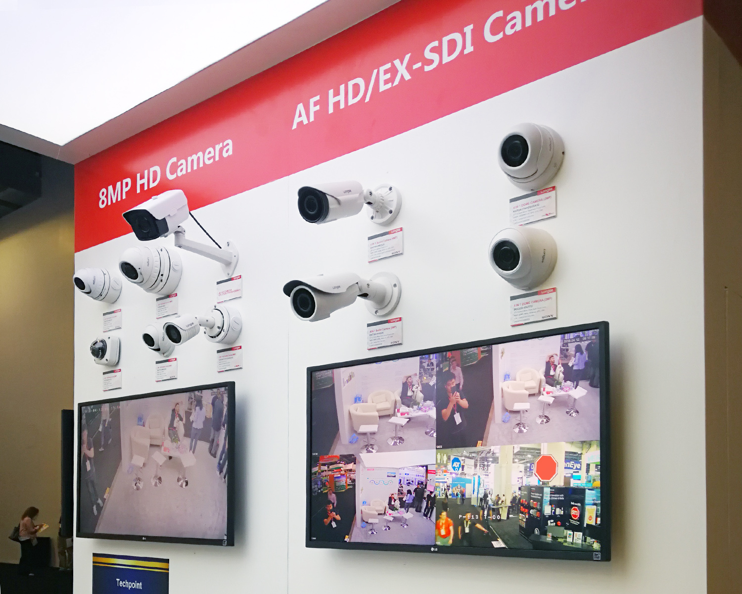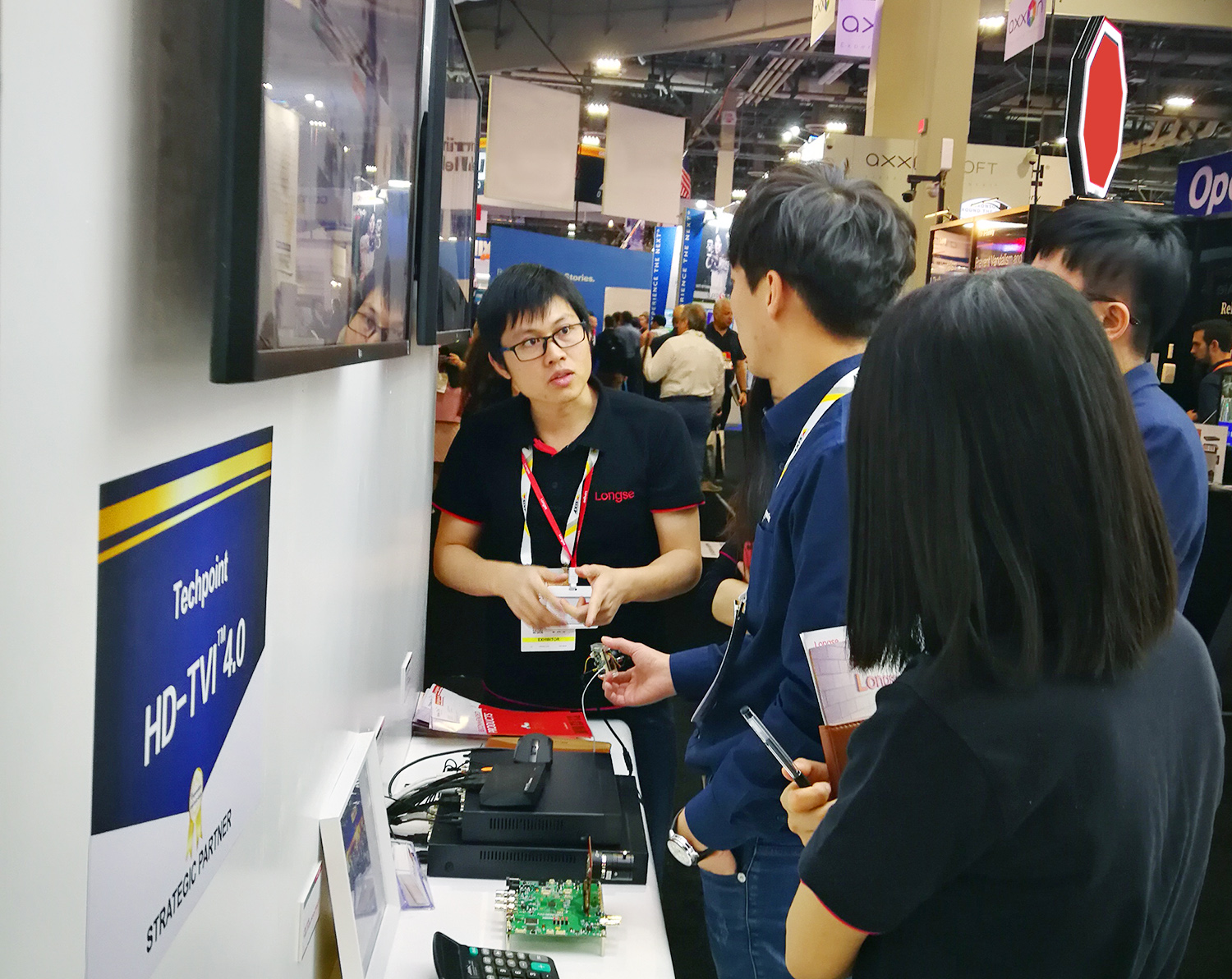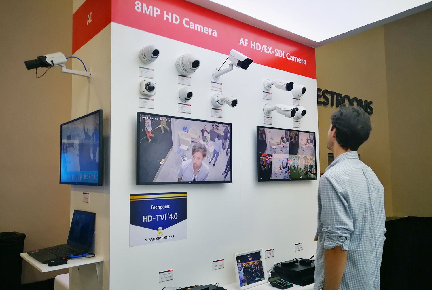 紅色靚麗的展臺(tái),給攝像機(jī)增添了不少活力。在該展臺(tái)上,長(zhǎng)視科技向國(guó)際買家展示了多款熱門的同軸高清系列產(chǎn)品,包括槍型機(jī)、半球機(jī)。透過(guò)顯示屏,客戶可近距離觀看并體驗(yàn)各類攝像機(jī)的成像效果,直觀感受高清、紅外夜視效果,感受攝像機(jī)的魅力所在,選定最佳的解決方案。