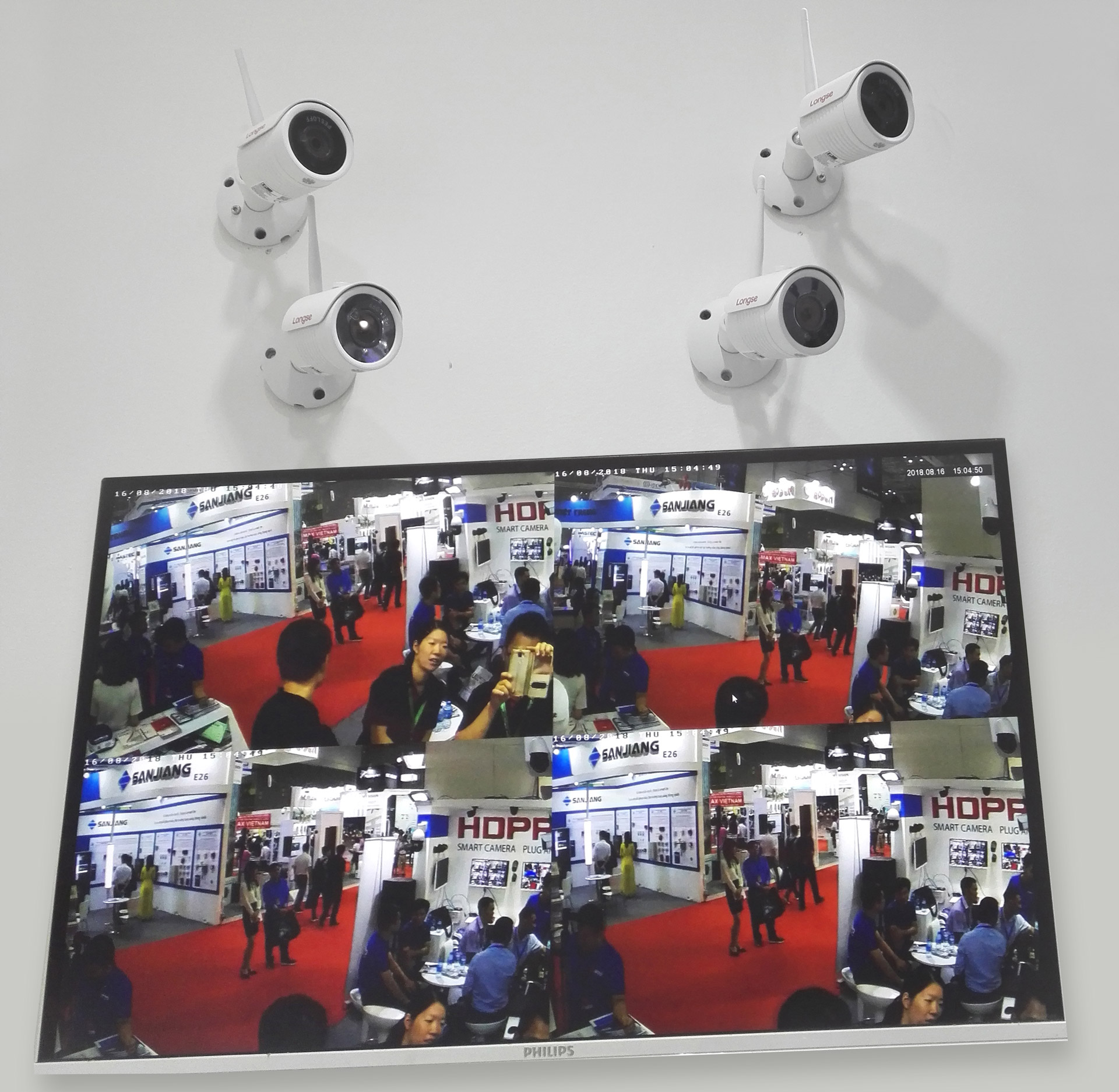 在為期三天的展會(huì)中,長(zhǎng)視科技透過(guò)該平臺(tái),全面展現(xiàn)了智能級(jí)的安防產(chǎn)品,覆蓋家居、商鋪、工廠、道路等應(yīng)用場(chǎng)景。在展位上,智能XVR監(jiān)控套裝及400萬(wàn)WIFI監(jiān)控套裝產(chǎn)品中的效果驚艷全場(chǎng),吸引了眾多客戶駐足體驗(yàn),切身感受安防產(chǎn)品的魅力。同時(shí),越南代理TOAN PHAT還攜手長(zhǎng)視科技共同舉辦,邀請(qǐng)客戶參與“買攝像機(jī)送車”的活動(dòng),讓現(xiàn)場(chǎng)的氣氛一度高漲。
