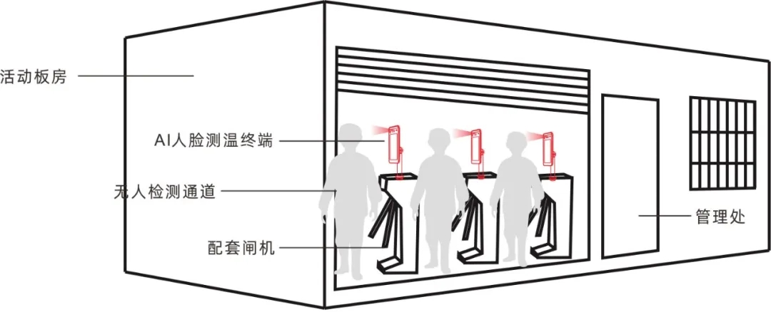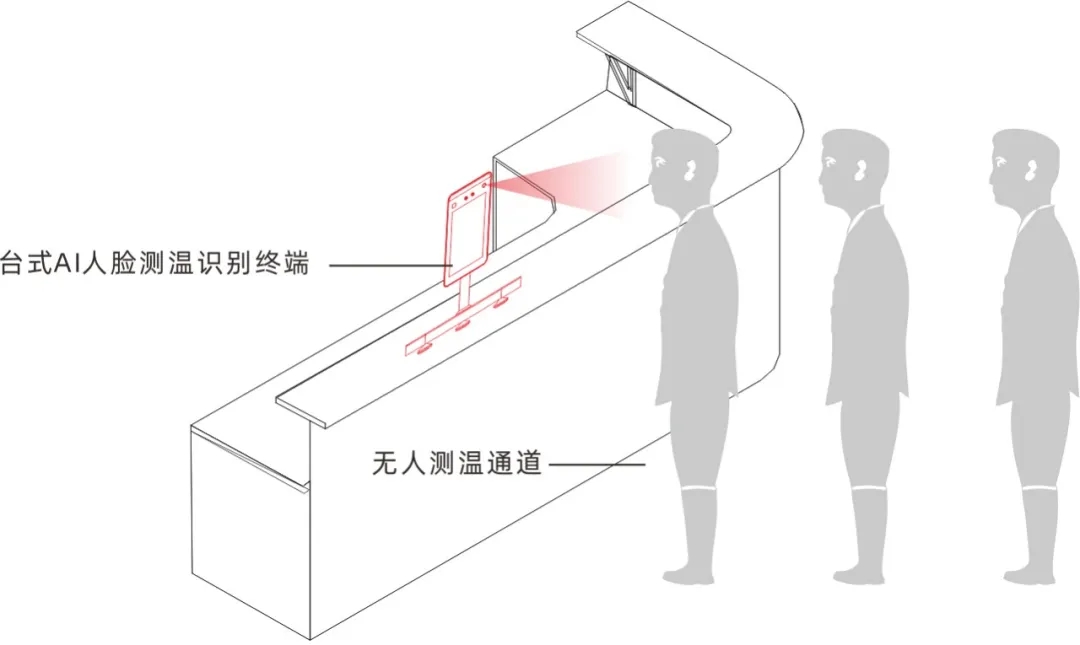 室內(nèi)解決方案:室內(nèi)的環(huán)境溫度較為適中,便可將AI人臉測溫終端進(jìn)行桌面式安裝、立體式安裝和與閘機(jī)配合使用,長視科技提供各種方案便于客戶選擇;
