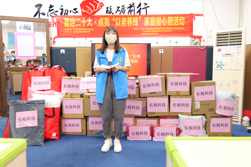 2022年9月20日上午,長視科技股份有限公司與廣州市黃埔區(qū)殘疾人聯(lián)合會、廣州市黃埔區(qū)愛海慈航社會工作服務(wù)中心聯(lián)合舉辦“攜手筑夢,點亮‘以老養(yǎng)殘’家庭微心愿”行動。