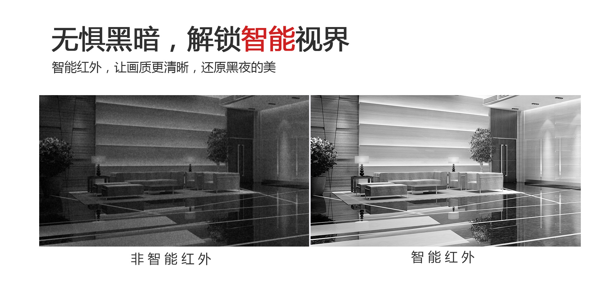 智能紅外技術(shù)(Smart IR)帶來(lái)的技術(shù)變革將升華長(zhǎng)視科技攝像機(jī)的品質(zhì)。攝像機(jī)搭配Smart IR帶來(lái)的技術(shù)優(yōu)勢(shì),在靈敏度、亮度的調(diào)節(jié)下,將對(duì)畫質(zhì)的輸出進(jìn)行優(yōu)化,并不受環(huán)境、溫度、照度的影響。即使在再暗的環(huán)境下,其夜視體驗(yàn)仍能超乎你的想象。