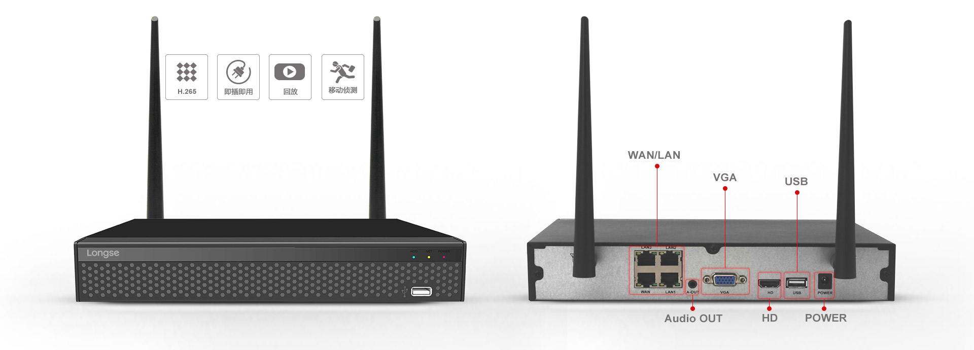 長視500萬 WIFI監(jiān)控套裝具備的即插即用功能,以簡化流程為目的,接通攝像機和錄像機的電源,