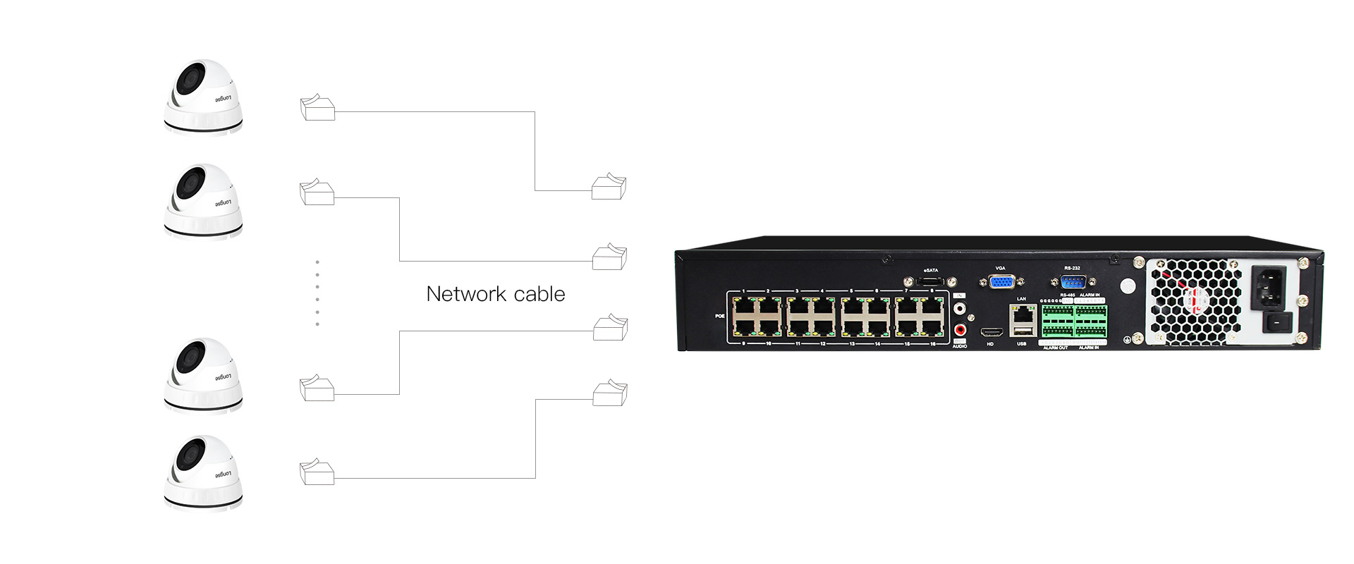 錄像機(jī)支持16個(gè)PoE通道,以一根網(wǎng)線的連接即可通電16個(gè)同時(shí)支持PoE的攝像機(jī)并可以進(jìn)行