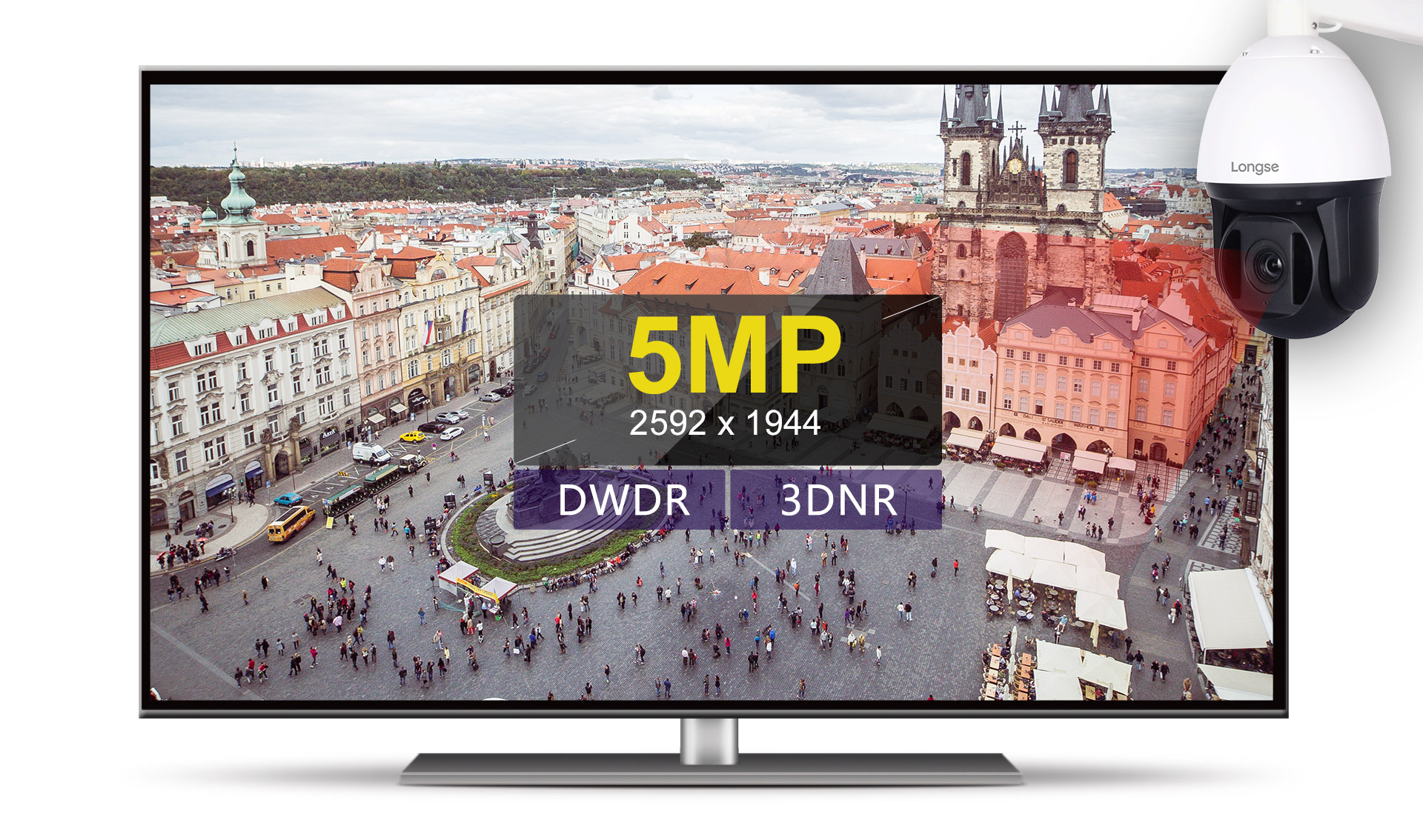 長(zhǎng)視500萬(wàn)網(wǎng)絡(luò)云臺(tái)攝像機(jī),配備1/2.8英寸Sony低照度CMOS傳感器,能以5MP@30fps的高清分辨率輸出畫面。攝像機(jī)支持DWDR和3DNR的圖像技術(shù),適用于不同場(chǎng)景,讓監(jiān)控效果更自然,無(wú)過度曝光與噪點(diǎn),記錄更清晰的細(xì)節(jié)。