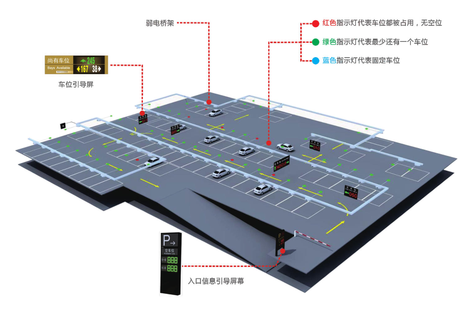 車位指示燈不同的顏色,代表不同的含義。